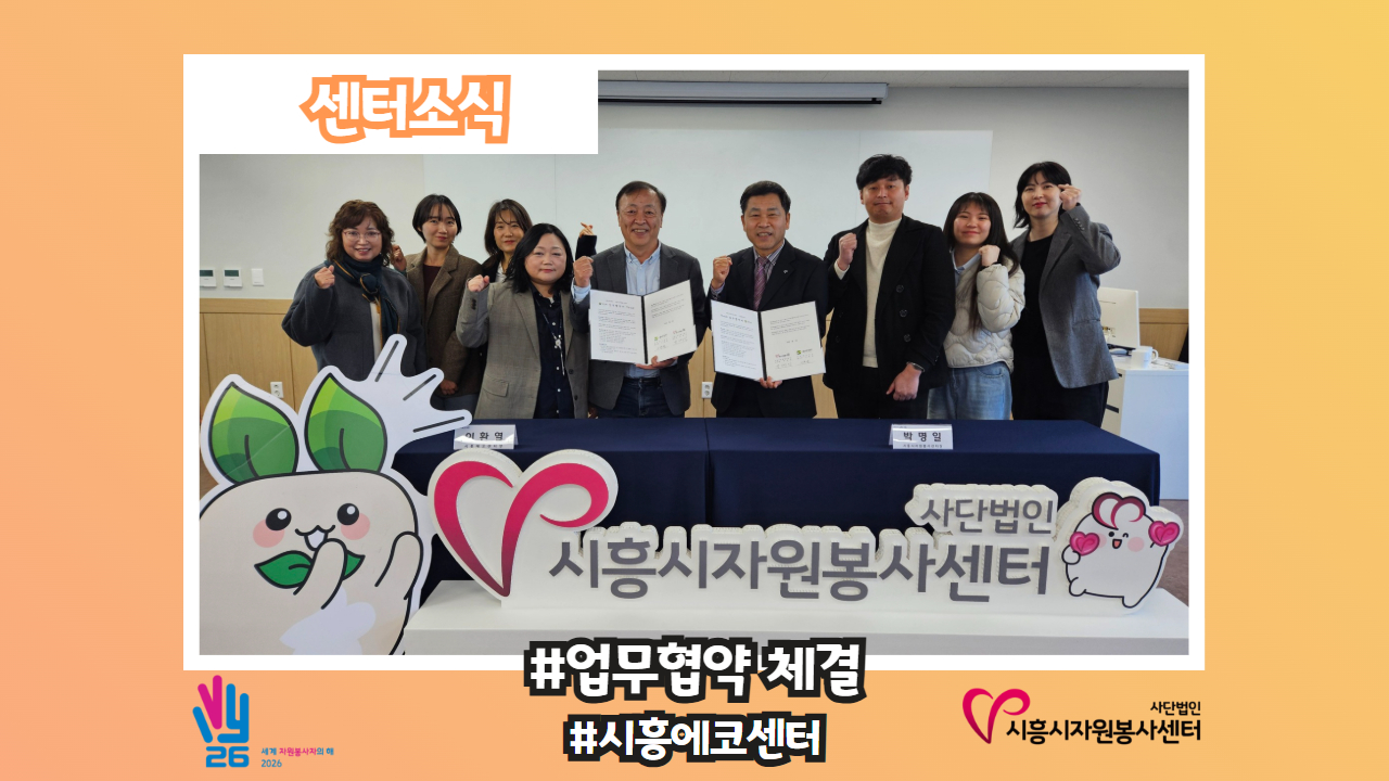[센터소식-#업무협약체결 #시흥에코센터] 시흥시자원봉사센터🤝 시흥에코센터 🎉 3월 19일 시흥시자원봉사센터에서 청년 ESG 자원봉사 활성화를 위한 업무협약이 진행되었습니다!! 업무협약의 주요 내용은 📍 청년 ESG 자원봉사 프로그램 공동 기획 및 단체 운영 📍 환경 교육 및 자원봉사 활동 연계 📍 환경 관련 데이터 공유 및 활동인증 일감 연계 📍..