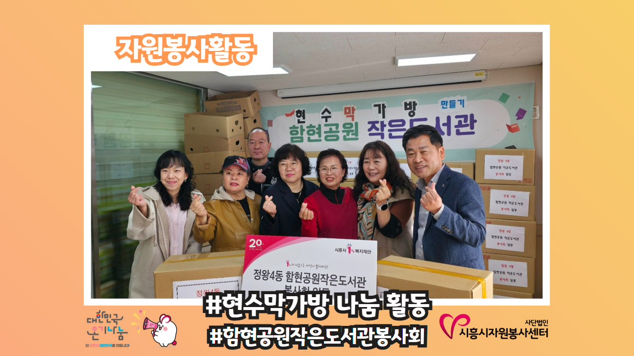 [자원봉사활동-정왕4동 #함현공원작은도서관봉사회 사랑의 현수막 가방 전달] 10월 29일 정왕4동행정복지센터 내에 있는 함현공원작은도서관에서 행정복지센터, 병원, 자원봉사단체 등에 자원봉사자의 사랑과 노력이 듬뿍담긴 현수막 가방 3,350개를 전달하는 시간을 가졌습니다🩵🛍️ 🌏지구를 지키면서 봉사자분들의 재능을 발휘하여 긴 기간동안 현수막 가방이 필요한 곳곳에 따뜻한 나눔을 전하는 곳이 있는데요~?! ..