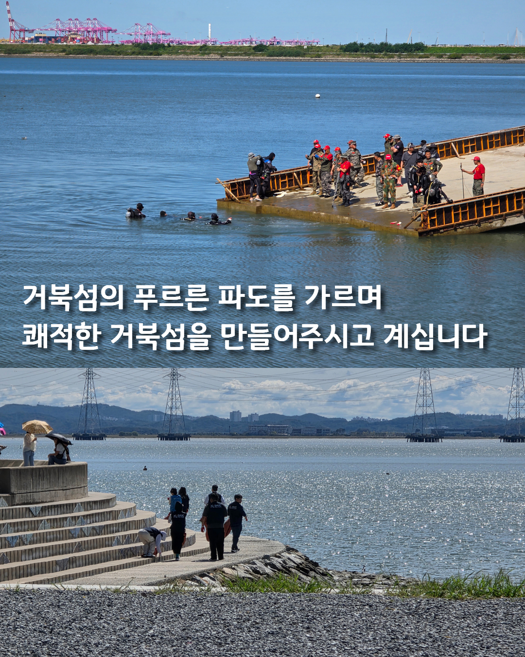 파란 하늘이 유독 바다같았던 9월 21일 오전, 거북섬동의 푸른 바다🌊를 뒤로하고 해병대시흥시전우회에서 수중 정화 및 수변 청소 활동을 위해