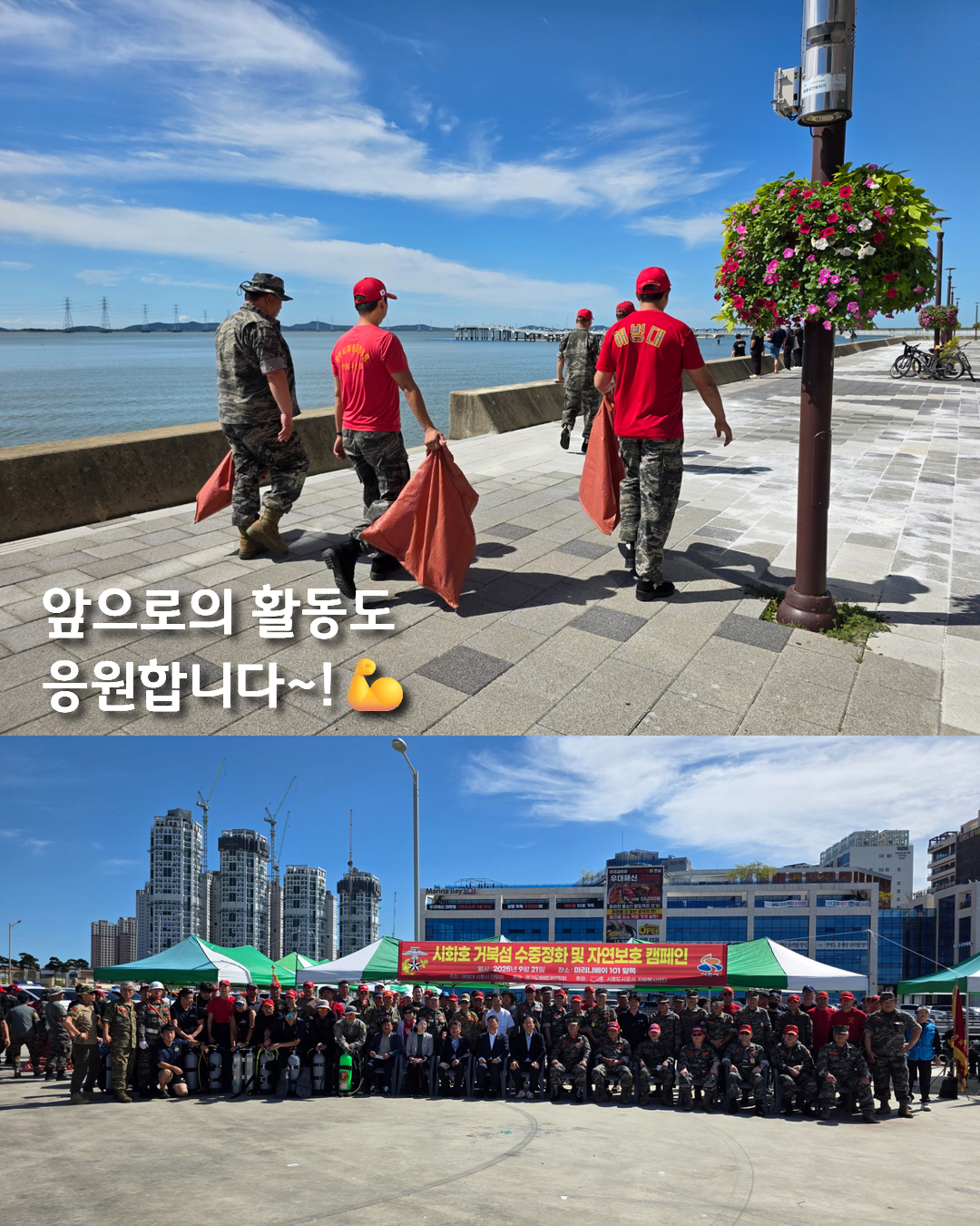 해병대원들과 시흥도시공사에서 거북섬동을 걸으며 시민들의 깨끗한 거리 이용을 위해 환경정화에 참여해주셨어요💫