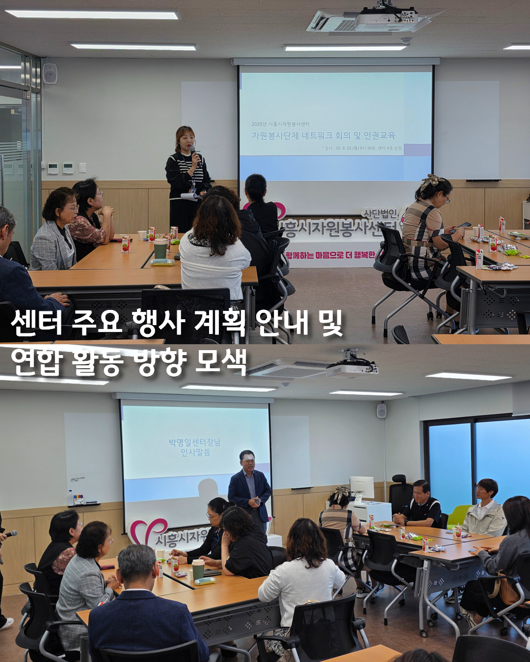 9월 22일(월) 오전, 시흥시자원봉사센터 4층 성장 교육실에서 단체 간담회와 인권 교육이 진행되었습니다🙌