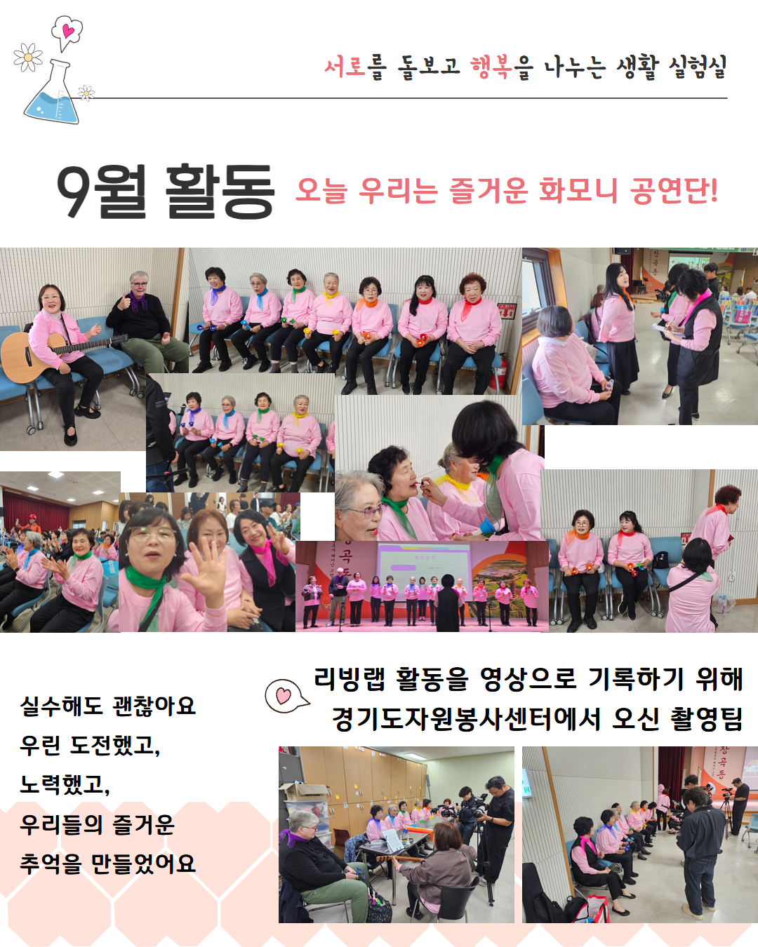 #경기도 #시흥시 #시흥시자원봉사센터 #경기도자원봉사센터 #자원봉사협동조합모아 #아우룸사회적협동조합 #지원사업 #자원봉사 #온기나눔 #노인 #상호돌봄 #노노케어 #노인상호돌봄 #리빙랩 #생활실험실 #즐거운화모니 #핸드벨 #합창 #공연 #장곡동 #화모니공연단