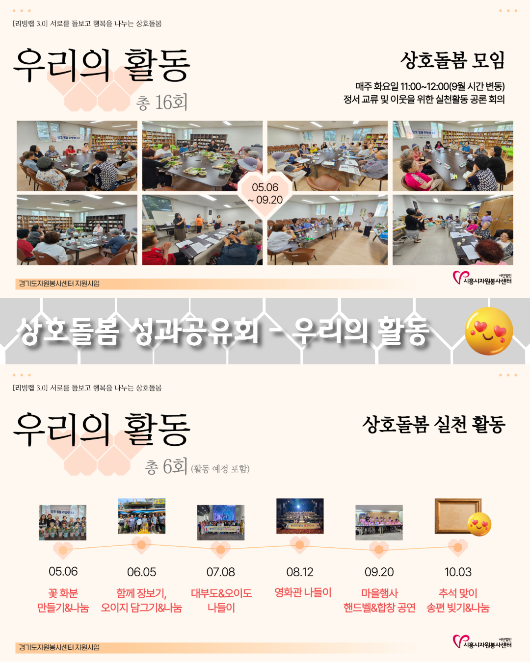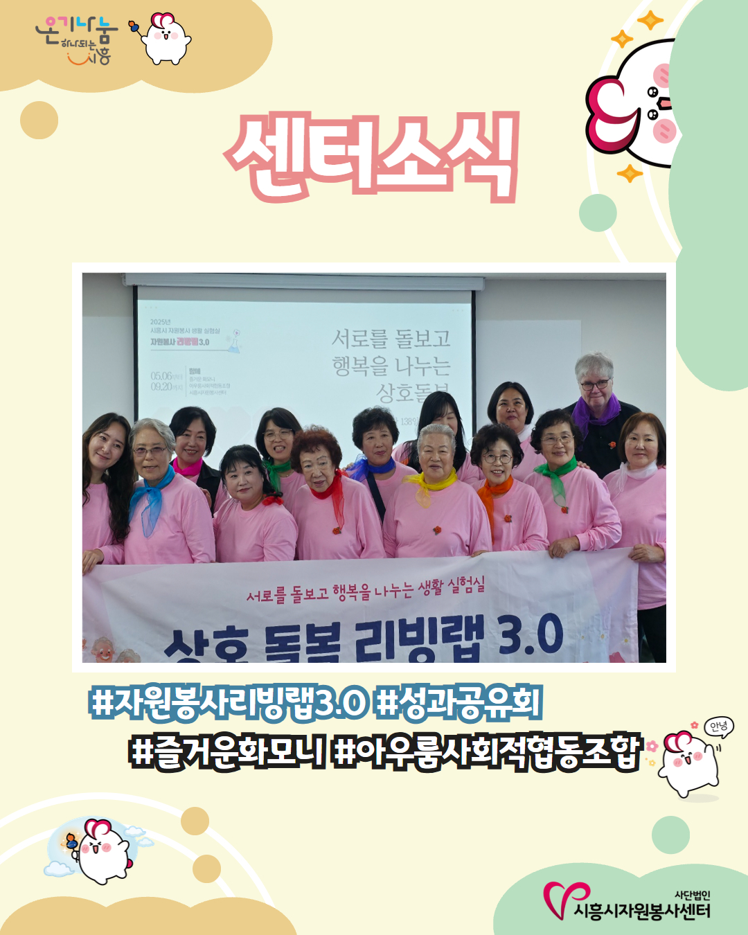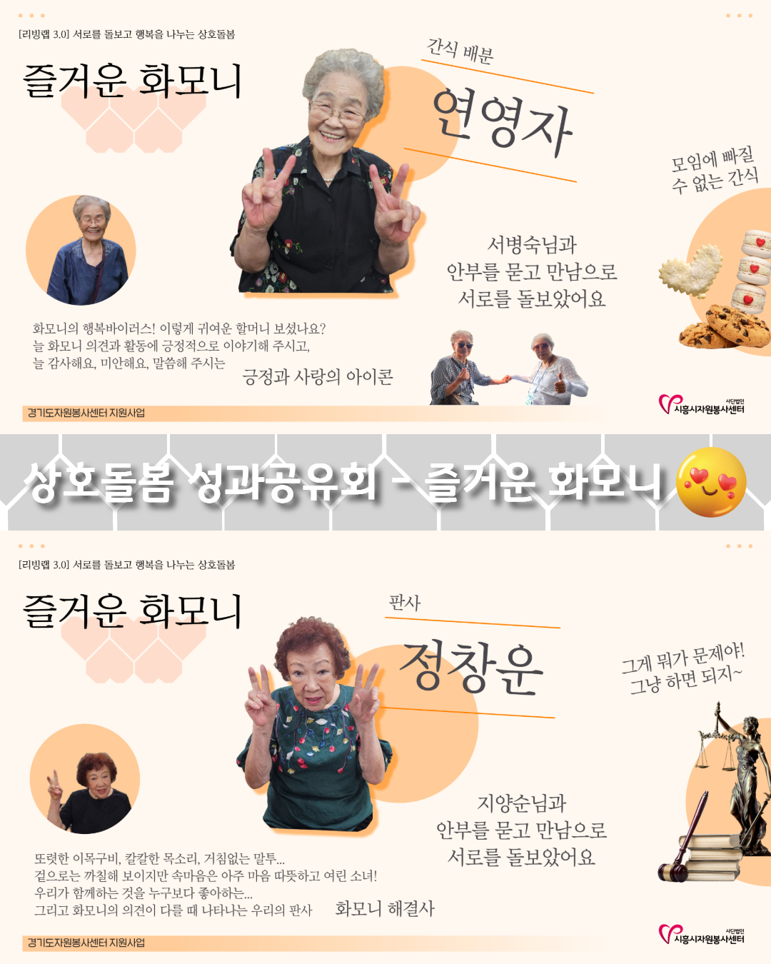 #경기도 #시흥시 #시흥시자원봉사센터 #경기도자원봉사센터 #자원봉사협동조합모아 #아우룸사회적협동조합 #지원사업 #자원봉사 #온기나눔 #노인 #상호돌봄 #노노케어 #노인상호돌봄 #리빙랩 #생활실험실 #즐거운화모니 #성과공유회 #감동의도가니