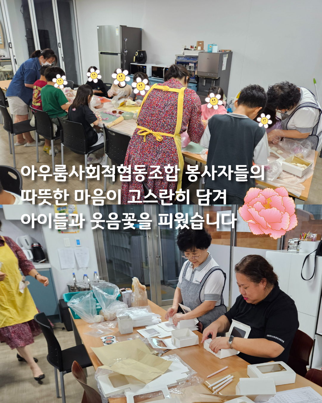 아우룸사회적협동조합 봉사자들의 따뜻한 마음이 고스란히 담겨 아이들과 웃음꽃을 피웠습니다🌸