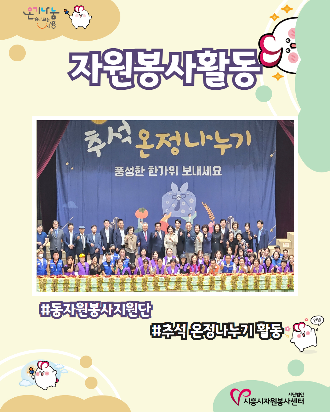 추석을 앞두고, 시흥시1%복지재단 추석온정나누기 행사에 동 자원봉사지원단이 함께해주셨습니다 🙏✨