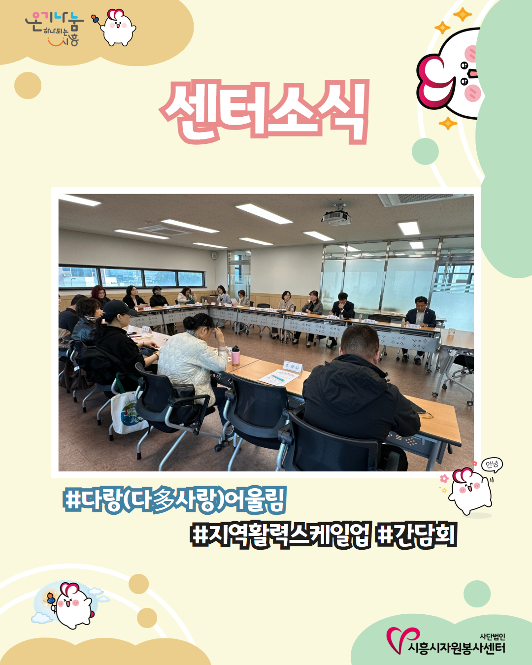 #시흥시자원봉사센터 #다랑다多사랑어울림 #시흥지역활력프로젝트 #네트워크간담회 #자원봉사 #시흥자원봉사 #스케일업 #한국중앙자원봉사센터 #지역활력스케일업 #지역활력스케일업프로젝트 #자원봉사단체 #다문화 #다랑어울림 #공모사업