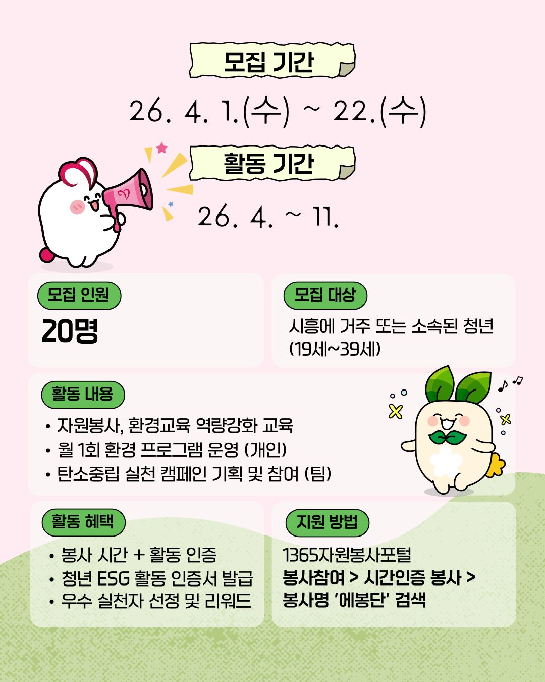 🌱 「청년 ESG 에봉단」 시흥시 청년 에코 봉사단 모집 신청 안내 🌱