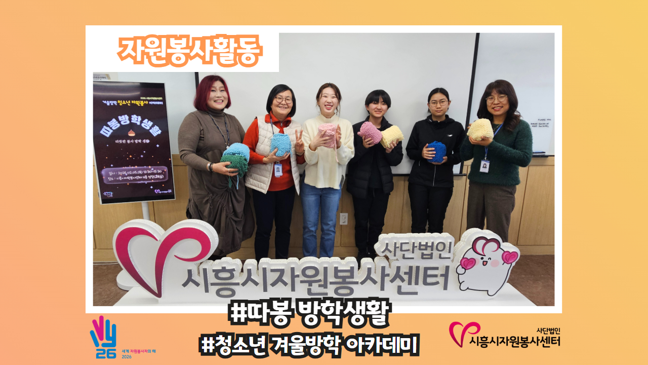[자원봉사활동-#청소년 겨울방학 아카데미] 지난 2월 5~6일, 시흥시자원봉사센터에서 청소년 겨울방학 자원봉사 아카데미 - 따뜻한 봉사활동 방학 생활 - 🌰따봉방학생활🌰이 진행되었습니다!😉 🌱 1일 차 – 자원봉사의 시작을 배우다! 자원봉사의 기본 개념과 사례를 배우며 “왜 봉사를 해야 할까?”를 함께 고민하고~💕 이어 진행된 뜨개 목도리 만들기 활동에서는 한 코 한 코 정성을..