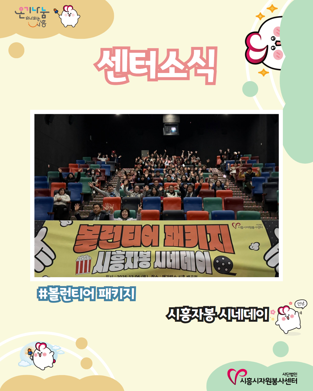 #시흥자봉 #시네데이 #시흥시자원봉사센터 #자원봉사 #봉사문화 #우수자원봉사자 #인정보상 #인정예우 #볼런티어 #볼런티어패키지 #영화보는날 #우수봉사자 #시간인증 #활동인증 #새로운 #인정문화 #출발