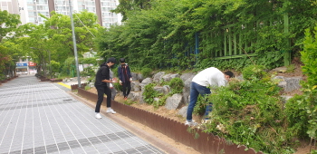 외지 봉사자가 장곡동 방치된 공원을 가꿨다.