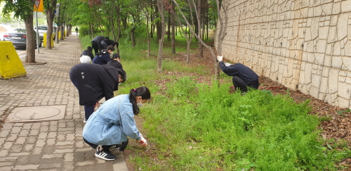 걷고 싶은 거리 돌 사이에 나온 잡초를 뽑았다.