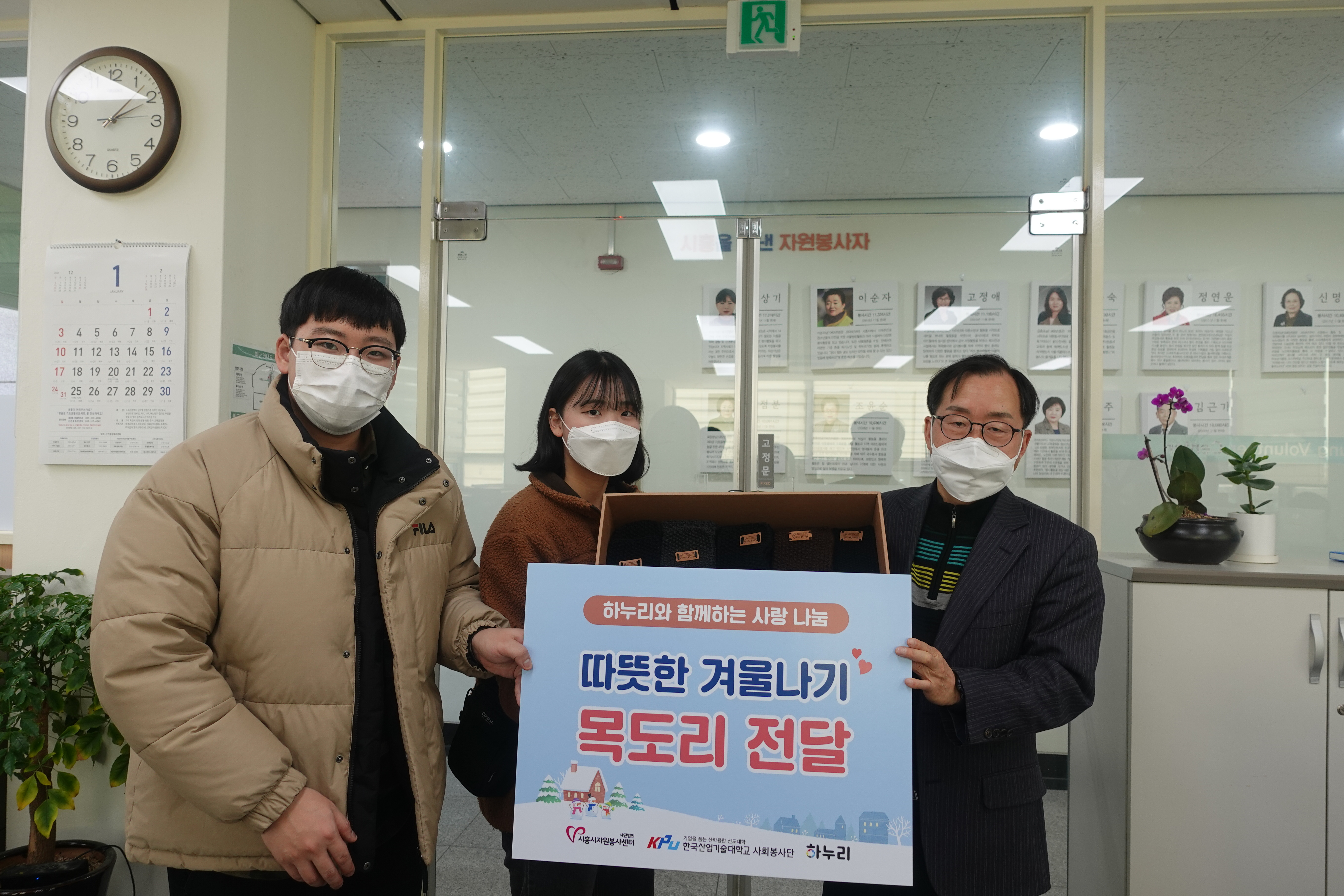 한국산업기술대학교 사회봉사단 '하누리' 목도리 전달