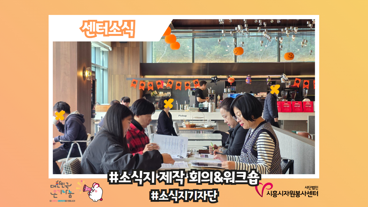 [센터소식-#소식지기자단 워크숍] 시흥시자원봉사센터에서는 시흥시 자원봉사 문화 확산과 자원봉사 참여 증진을 위해 분기마다 소식지를 제작하고 있습니다📖 수년간 쉴 틈 없이 제작 된 소식지와 수십시간 현장 취재와 기사 작성을 위해 노력해주신 소식지 기자단의 소소한 힐링 시간을 보냈는데요💞 이번 월례회의와 함께 진행 된 워크숍은 향후 26년도 소식지 제작 방향성과 소식지 기자단의 활동인증 ..