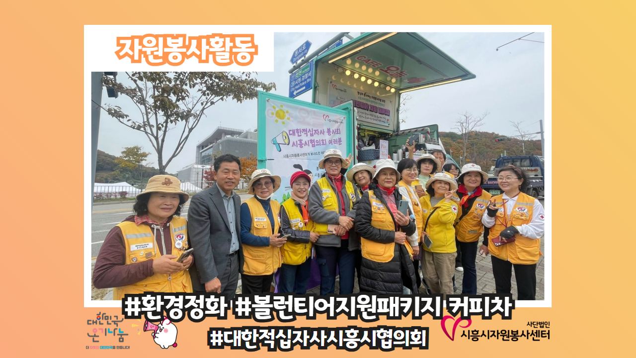[자원봉사활동-#대한적십자사시흥시협의회 연합 #환경정화 활동 X #볼런티어지원패키지] ☕ 볼런티어 지원 패키지 현장 스케치 ☕ 시흥시자원봉사센터가 준비한 ‘볼런티어 지원 패키지 커피차 지원’이 11월 8일(토), 물왕호수 일대에서 진행된 대한적십자사 봉사회 시흥시협의회 환경정화활동 현장을 찾아갔습니다 🌿 이날 봉사활동에는 약 100여 명의 봉사자들이 참여해 물왕호수 주변의 쓰레기..
