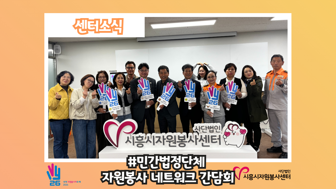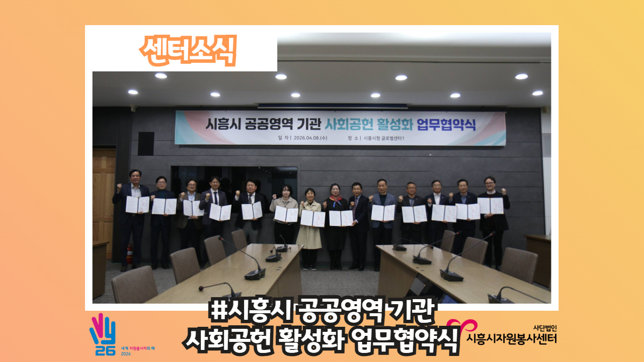 [센터소식-#시흥시 공공영역 기관과 함께하는 2026 사회공헌 네트워크 간담회] 한 마음 한 뜻으로 시흥시에 따뜻한 온기를 전하는 사회공헌 활성화를 위해 우리가 처음 이 자리에 모였다‼️‼️ 바로 시흥시 공공기관, 관내 대학교 및 종합병원 등 각 기관의 사회공헌 담당자분들입니다🥰 처음이라 떨림과 설레임 그리고 의욕 한 가득💪 품고 센터 사업계획을 시작으로 각 기관별 사회공헌 사업 공유 및 함께 협력하고 싶은 활동 제안 등 다채로운 간담회가 진행되었어요🤩 이번 간담..
